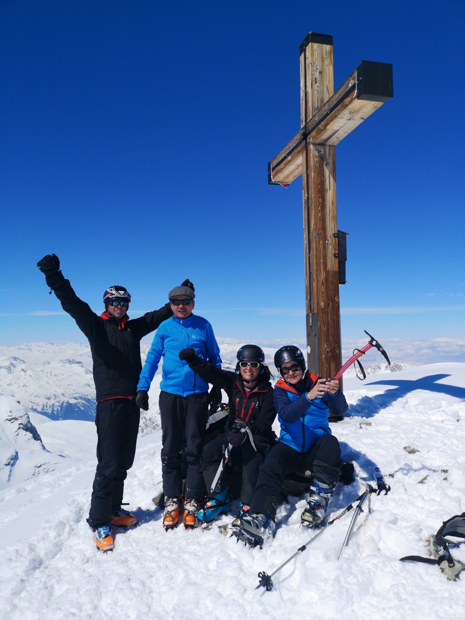 Mit dabei: Rita Hedley, die zum ersten Mal mit Steigeisen und Pickel unterwegs war, Roman Lehmann, Kurt Roos und Rosi Forrer